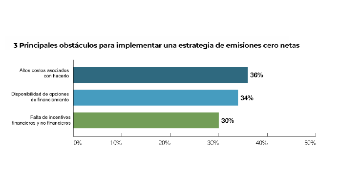 El financiamiento constituye un gran obstáculo. Casi la mitad (47%) de las empresas que aún no se han comprometido con un plan de transición indican que lo que las frena son los elevados costos. Incluso las empresas de energía que se califican a sí mismas como progresivas, que cuentan con un plan específico de reporte, no pueden comprometerse con realizar más acciones por los elevados costos y por la falta de financiamiento.